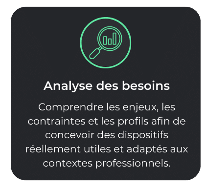 Mon objectif : concevoir des parcours clairs, engageants et réellement utiles aux apprenants, en lien avec les contraintes métier et les enjeux des équipes.
