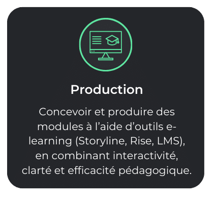 Ingénierie pédagogique · Structuration de parcours e-learning · Conception de modules Rise · Interactivité Storyline · Vulgarisation d’outils techniques · Conception de formations en anglais