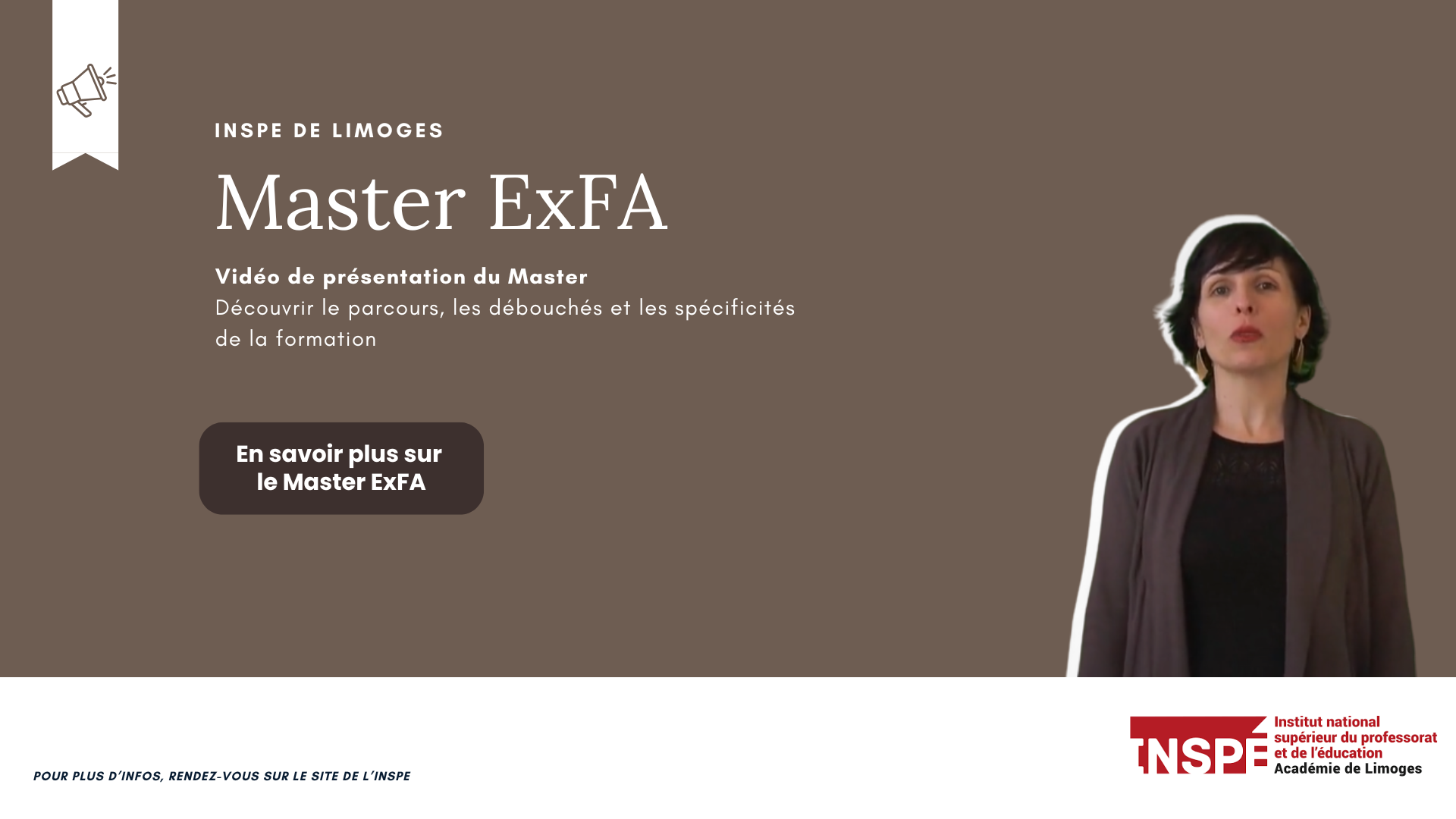 Le projet repose sur la conception et la réalisation d’une vidéo promotionnelle destinée à valoriser le Master ExFA de l’INSPE de Limoges, dans un contexte universitaire.